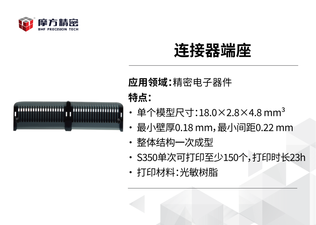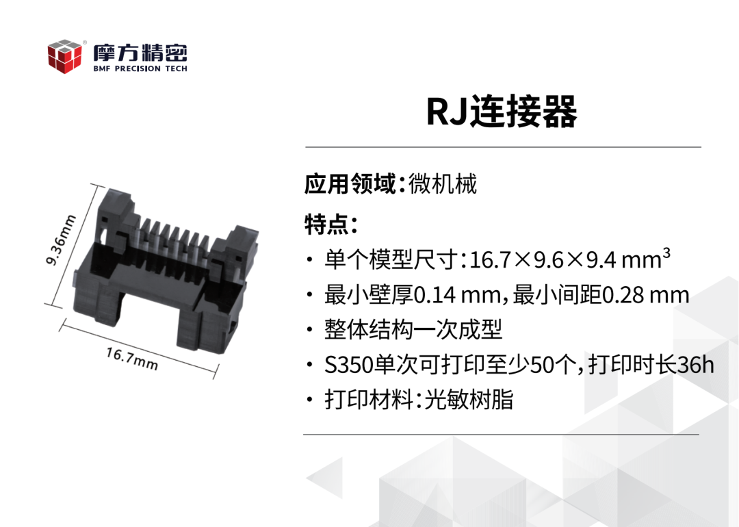 针对生产“痛点”microArch® S350应运而生,它具有高公差控制能力、大幅面打印等优势,配置有薄膜滚刀涂层技术和液槽加热打印技术,能极大提升生产效率,满足生厂商多元化的应用场景。同时,针对于精密医疗制造、生物医疗、微流控、微机械等行业新应用,摩方精密还同步提供降本增效的创新解决方案。更精准 高公差控制能力摩方精密3D打印设备采用面投影微粒体光刻(PμSL)技术,是目前行业内极少能实现2μm超高精度,同时兼具高公差控制加工能力的3D打印系统。microArch® S350依旧保持了摩方精密的超高公差控制能力,将加工公差保持在±50μm。