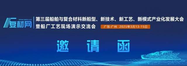 “十五五”是全面贯彻能源安全新战略,落实高质量发展,确保实现碳达峰和新型能源体系建设加速推进的关键时期。为顺应绿色、低碳、智能发展新趋势,开辟绿色智能船舶产业“新赛道”,带动船舶制造产业蓬勃发展,打造船舶制造产业发展新优势,构建船舶制造产业新格局,共同探讨船舶制造产业发展路径,复材网将于2025年3月13-15日在广东•广州召开“第三届船舶与复合材料新船型、新技术、新工艺、新模式产业化发展大会暨船厂工艺现场演示交流会”,推动复合材料船舶领域向更清洁、高效、智能的方向发展。
