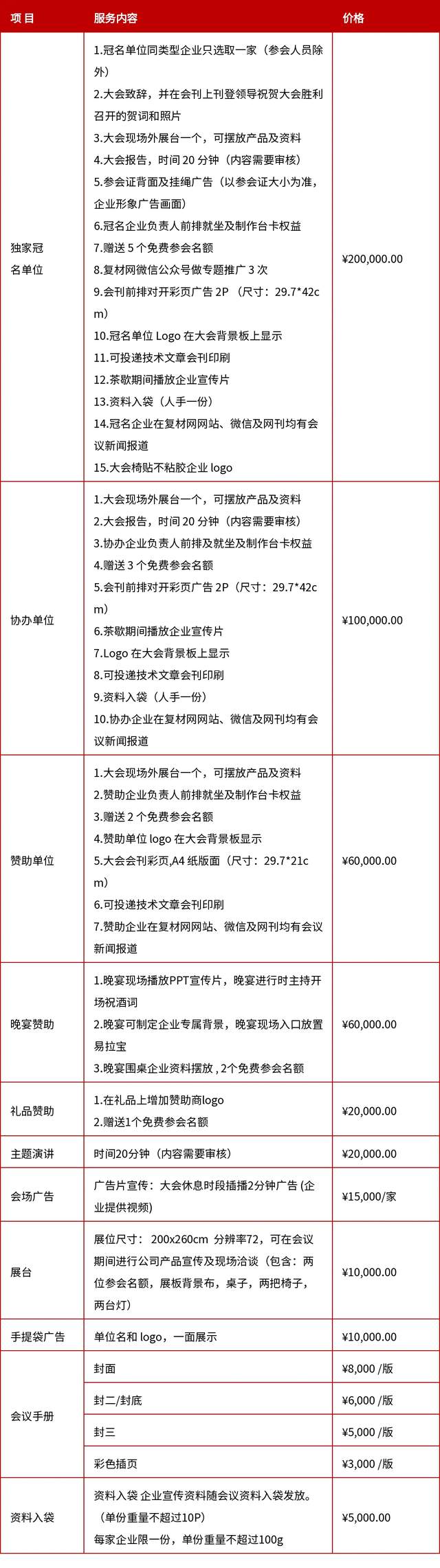 复材网非会员单位:3800元/人 、会员单位:1900元/人(含全部相关会议资料、会议通行证及会议用餐)。同一单位四人参会,免一人会费。