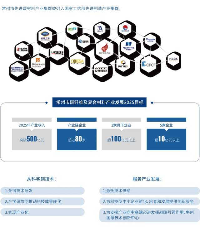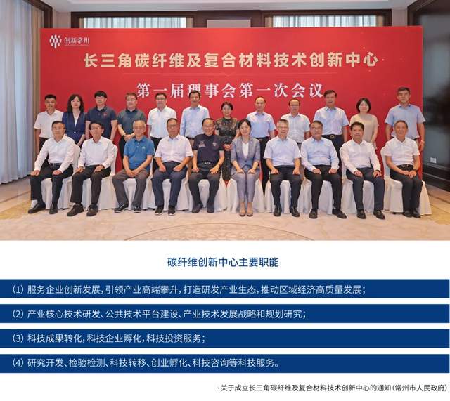 长三角碳纤维及复合材料技术创新中心由常州市人民政府、江苏省产业技术研究院/长三角国家技术创新中心和常州国家高新区管委会共同出资成立,其使命是面向国家战略与行业重大需求,建设国内外一流研发团队和公共服务平台,承担国家和行业重大科技项目,取得具有国际影响力的重大科技创新成果,孵化高水平碳纤维及复合材料创新企业,推动国家碳纤维及复合材料产业跨越式发展。