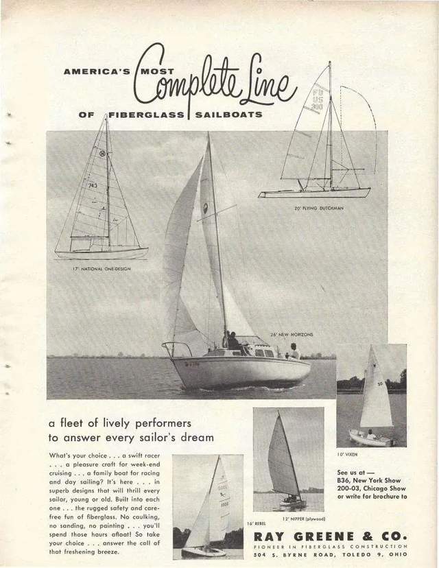 1942年:Ray Greene(美国)公司制造的第一艘玻璃纤维/聚酯树脂小艇(图1)