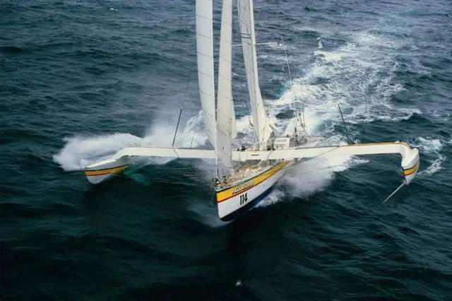 1980年:Eric Tabarly建造了保罗·理查德三体舰(Paul Ricard Hydroptère),采用了铝制水翼(图2)