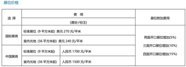 注:1)对于室内光地参展商,展位搭建费用由自己承担,展馆管理方将收取施工管理费。