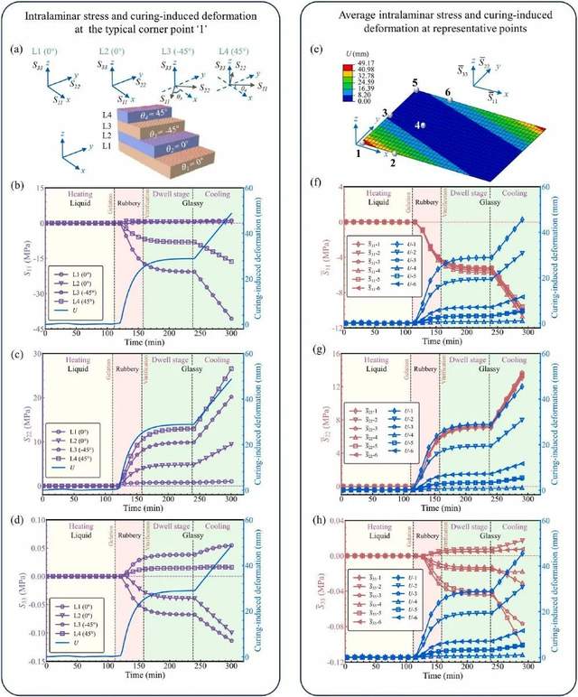 热固性树脂基连续纤维增强复合材料因其高比刚度、高比强度及轻量化特性,已成为航空航天、新能源汽车、高速轨道交通等高端装备用重要结构材料。然而,其固化过程中因树脂基体-增强体应变失配引发的内应力累积,导致构件脱模后产生不可控的固化变形。这种工艺诱导变形不仅会劣化材料的力学使役性能,而且会显著降低构件的几何精度与尺寸稳定性,进而诱发装配应力集中、连接失效等工程风险,严重制约了复合材料在航空航天等领域大型复杂构件等对几何容差要求严苛的关键部件中的规模化应用。