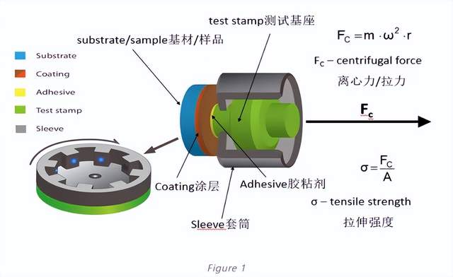 LUMiFrac®采用的技术称为CAT技术,如图(1)所示—在测试过程中,随着离心转速的逐渐增加,垂直的径向离心力FC 逐渐升高,因此也逐渐增加了样品系统的负荷。当超过临界强度时,接头断裂,测试基座(test stamp)在其套筒(sleeve)内移位。在断裂的这一时刻,相应位置的信号会自动和即时地从配套的检测模块(module)中发出。通过这个信号,转速和断裂的时间,断裂时候的力和强度会被自动记录。