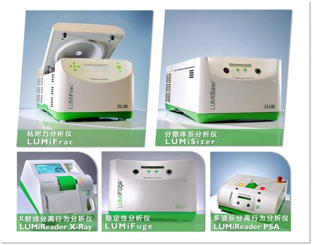 德国LUM系列材料性能分析仪器主要包括稳定性分析仪、分散体系分析仪、分离行为分析仪、以及粘结力/附着力/粘结强度分析仪四大种类。