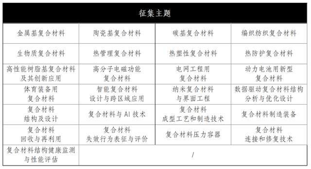 本次会议面向复合材料领域的专家学者征集摘要,征集范围(包括但不限于):