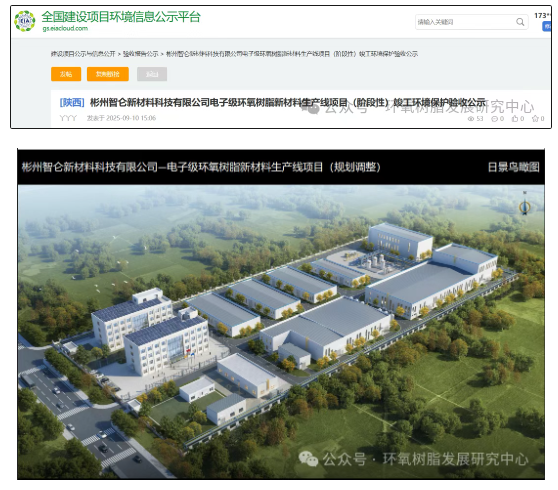 核心提示:9月10日,全国建设项目环境信息公示平台发布了关于彬州智仑新材料科技有限公司电子级环氧树脂新材料生产线项目(阶段性)竣工环