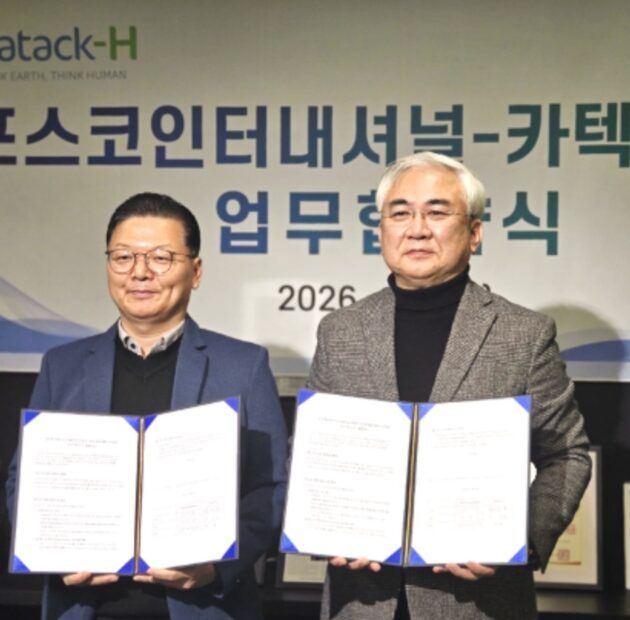 Catack-H与浦项国际签署备忘录 — (左)浦项国际董事李成洙,(右)Catack-H首席执行官郑镇浩(来源:Catack-H)